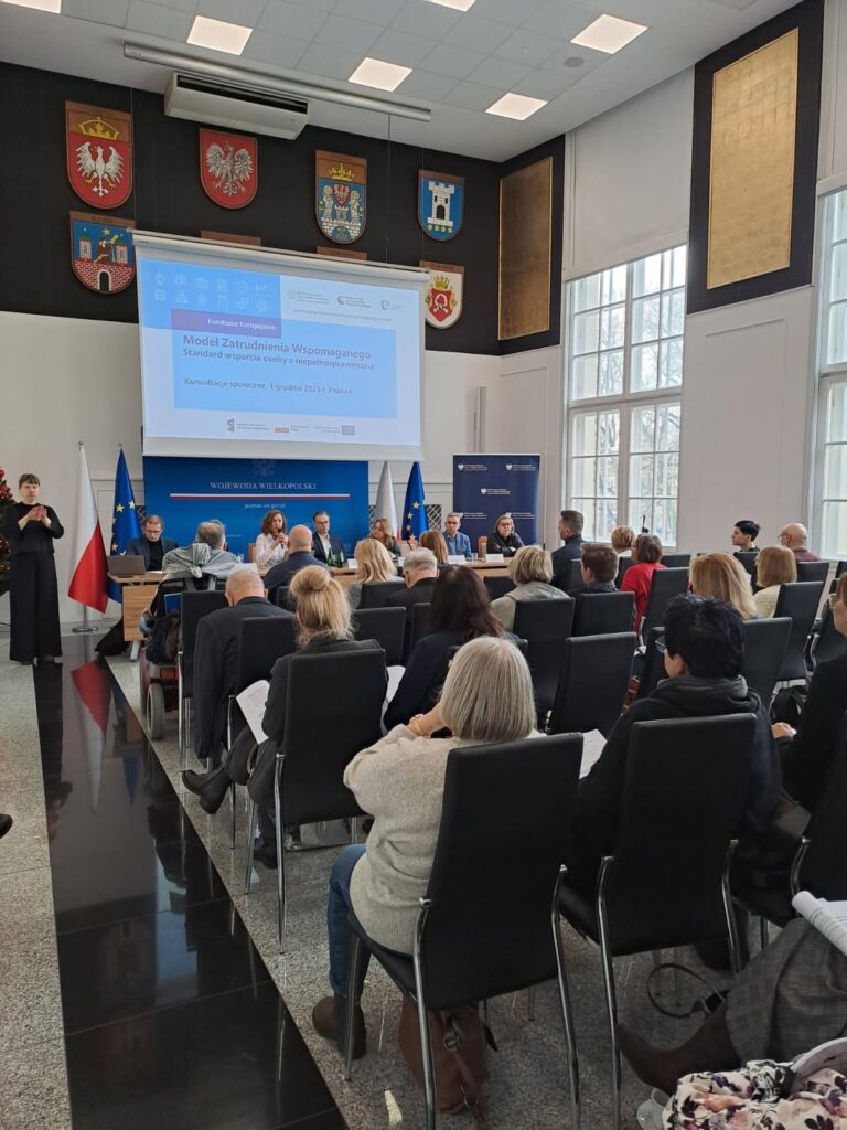 W dniach 01-03.12.2025 r odbyły się, przeprowadzone przez Biuro Pełnomocnika Rządu ds. Osób Niepełnosprawnych w ramach ogólnopolskich konsultacji dot. założeń dla modelu zatrudniania wspomaganego w Polsce, stacjonarne spotkania dla województwa wielkopolskiego. Konsultacje odbyły się w Urzędzie Wojewódzkim w Poznaniu, który był ich współorganizatorem. W spotkaniach wzięły udział 144 osoby.