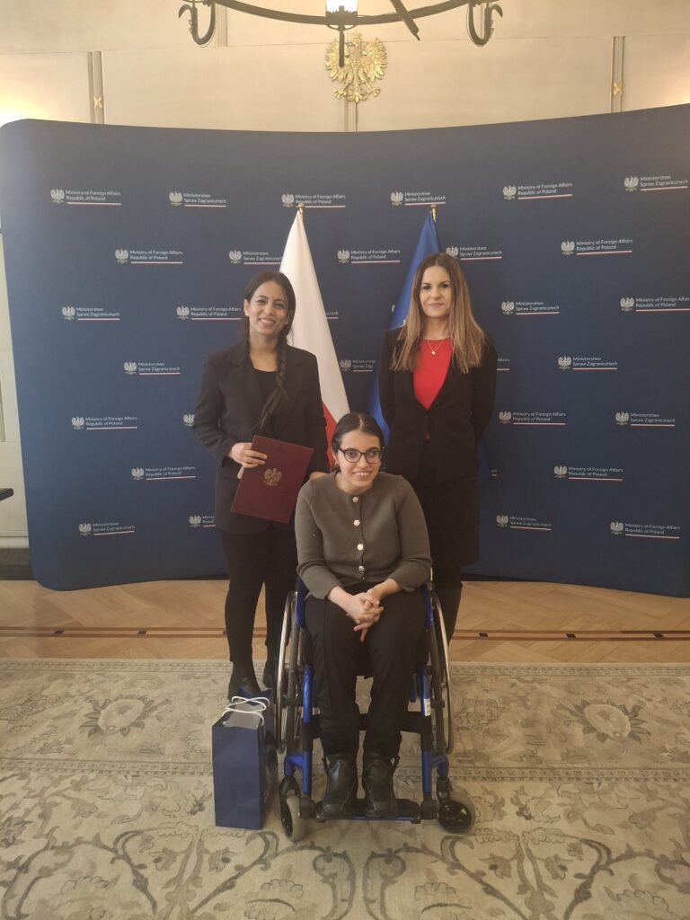 Przedstawicielka Biura Pełnomocnika Rządu ds. Osób Niepełnosprawnych przekazała Pani Nujeen Mustafa upominek ministerialny w imieniu Pani Minister Mai Nowak.